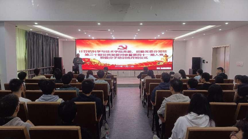 2024年10月17日早,计算机科学与技术学院党委、后勤党委分党校第二十期党员发展对象暨第四十一期入党积极分子培训班开班仪式在博学楼13楼报告厅成功举办。贵州大学党委原副书记骆长江出席仪式,校党委正处级组织员王平判、院党委副书记何飞参加。