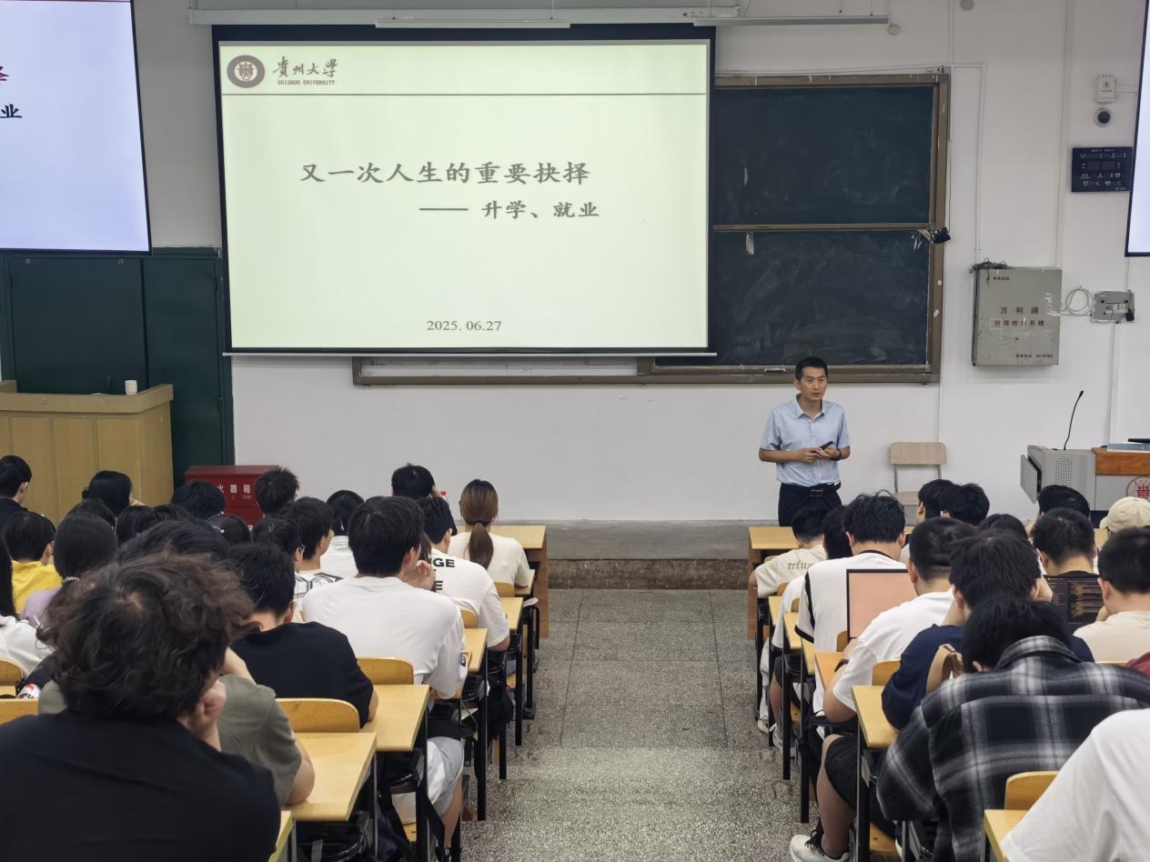 学院领导班子以《又一次人生的重要抉择——升学、就业》为题,向我院12个行政班学生分析当前就业形势与政策,细分毕业去向利弊及实践路径,指导学生规划好学业和职业,练就过硬的解决问题的能力本领,把握时代脉搏,到西部、到乡村、到部队、到科研岗位上建功立业。